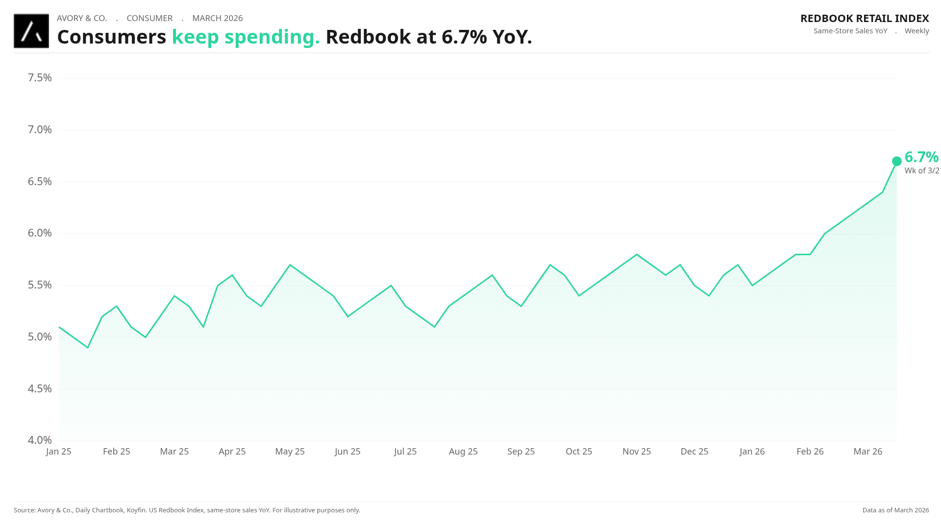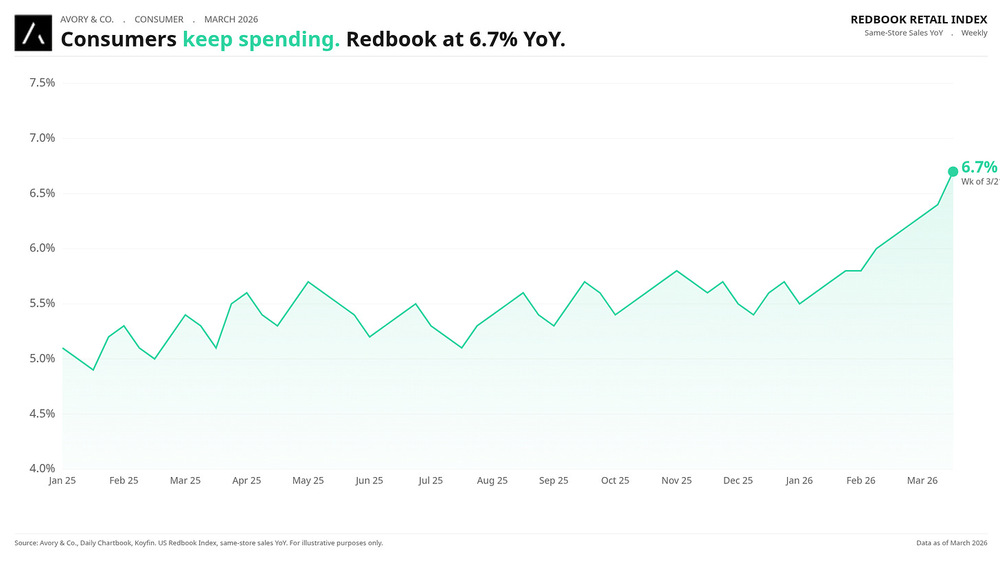 Consumers keep spending. Redbook at 6.7% YoY.