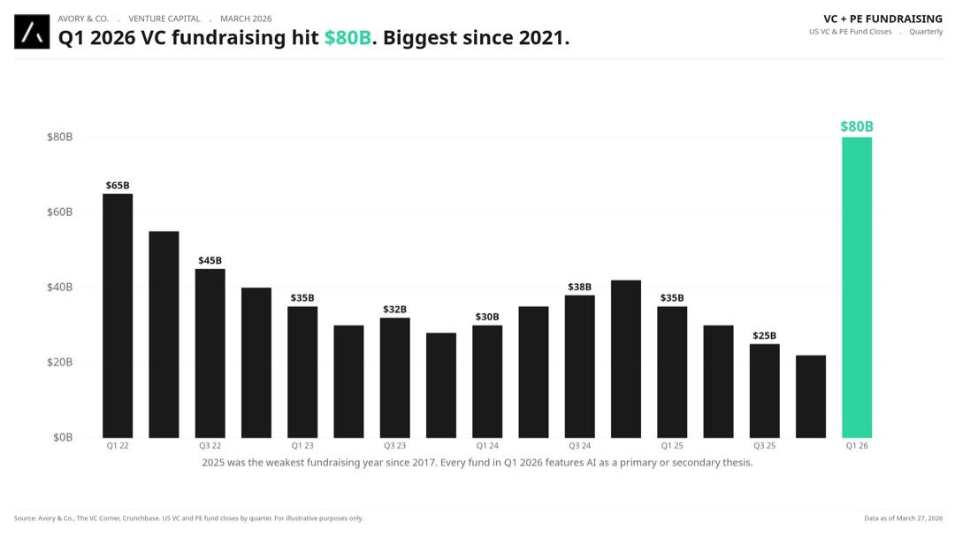 VC fundraising hit $80 billion in Q1. Biggest since 2021.