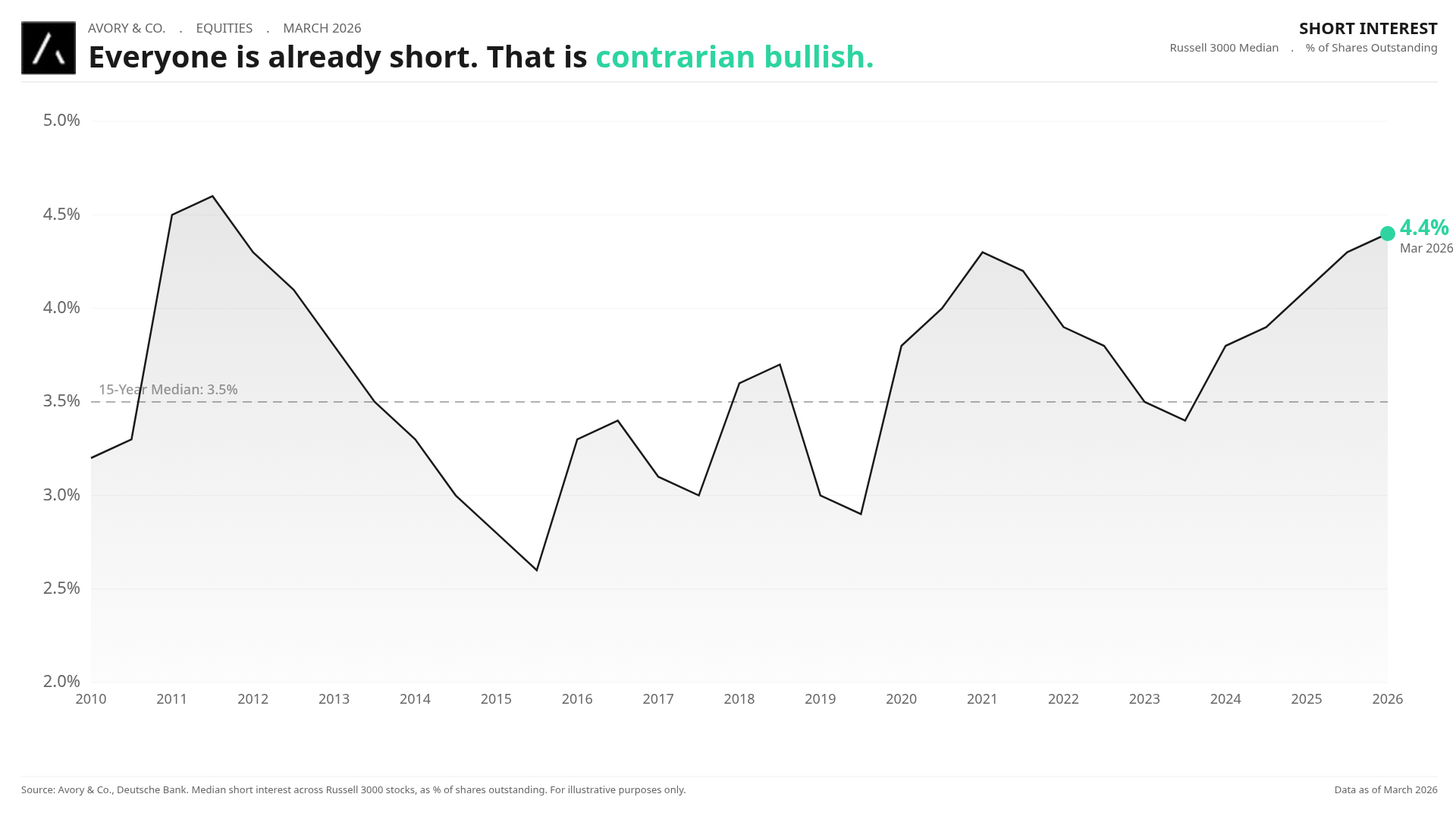 Now how about this. When looking at the Russell 3000 median short interest it sits at 4.4%, the highest since 2011. When everyone is already short, the incremental seller is gone. This is a coiled spring. Any positive catalyst forces covering and so like we have seen in the past, moves come fast, so stay the course.