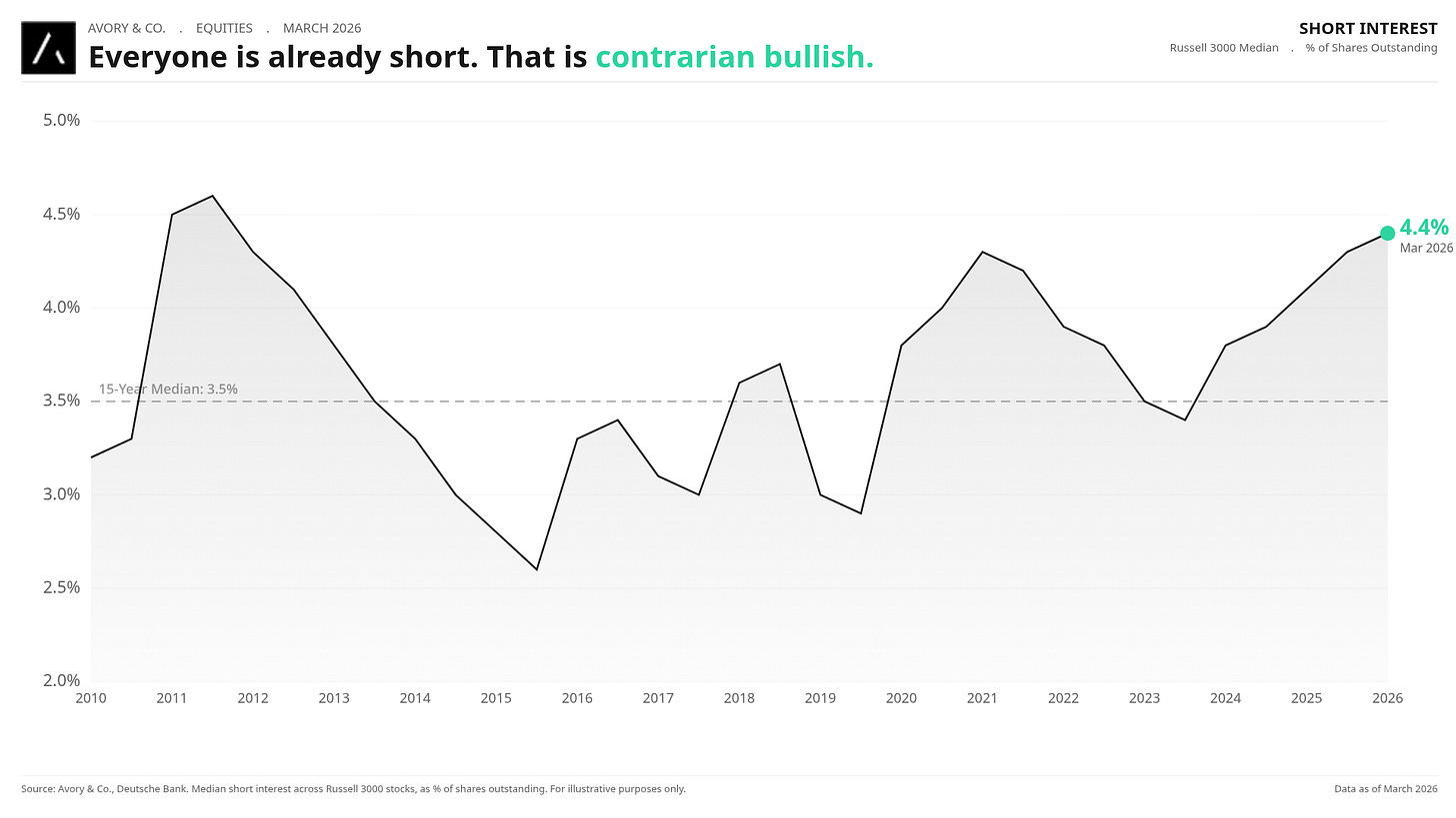 The data says the world is still moving forward. Peak uncertainty may be behind us. The incentives point toward resolution. And the technical setup, short interest, pension flows, insider buying, falling real rates, is quietly building a case for upside.